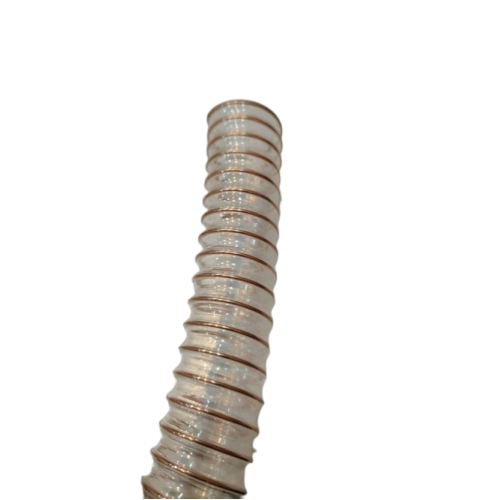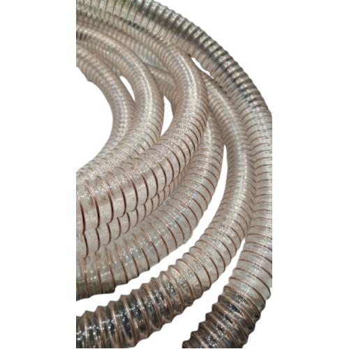 Polyurethane (PU) Ducting Hose Applications : Transportation of materials, such as shaving, chipping, granulate & pellets, dry foodstuff & pharmaceutical preparation. Features : Lightweight, wear resistant and extremely flexible, resistant to oils, solvents and gas fumes. Material : P5PU
